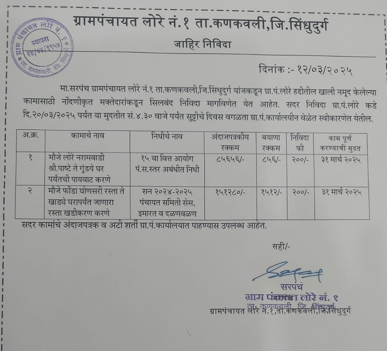 निविदा/सूचना